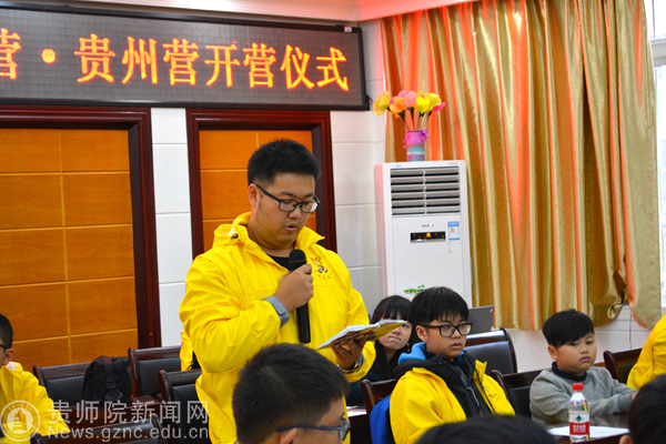 开营仪式上,令狐荣锋首先代表学校致欢迎辞,随后简要介绍了学校的历史沿革、发展形势、办学规模,表示我校正处于转型发展的关键阶段,在2015年顺利通过教育部评估工作后学校将根据贵州及本校的特色发展需要,不断地改善与提高。他希望海外华裔青少年们在我校安排的课程学习中及浏览多彩锦绣的贵州风景中,能收获不一样的文化体验,进一步了解中华文化,弘扬中华文化精神,满载而归。