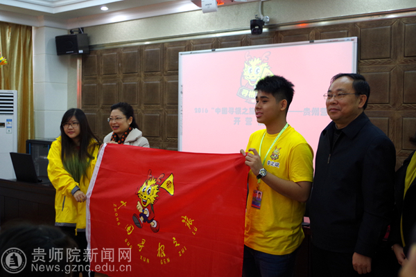 最后,令狐荣锋、蒋红共同向营员授冬令营营旗,带队老师向我校赠与纪念品,并与在场所有师生共同观赏了贵州旅游文化宣传片,开营仪式圆满结束。