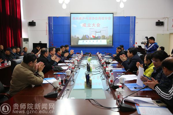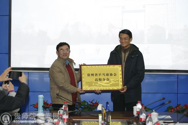 本网讯 12月18日下午,贵州省乒乓球协会高校分会成立仪式在我校第一会议室举行,省政协港澳台侨与外事委员会主任霍健康、省体育局副局长宋广强、省教育厅体卫艺处副处长严卫、省乒协秘书长陈智勇、贵州理工学院党委书记曾羽等领导出席成立大会,我校李存雄校长主持成立仪式。
