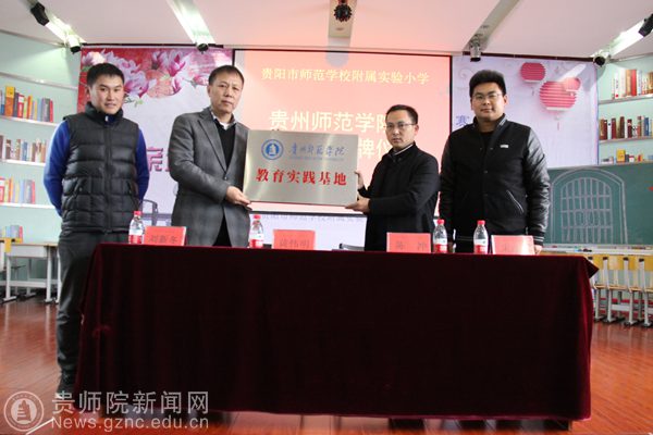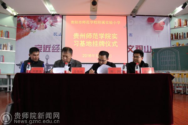 12月12日下午,在贵阳师范学校附属实验小学会议室举行了伟德国际1949官网与贵阳师范学校附属实验小学共建大学生教育实习基地的签约和授牌仪式。出席仪式的有贵阳师范学校附属实验小学校长陈冲,伟德国际1949官网体育学院院长黄伟明,办公室主任朱继伟,实习负责教师刘新冬。仪式由贵阳师范学校附属实验小学体育组组长何程骋主持。