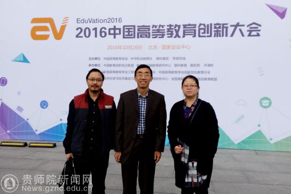 本网讯 10月26日,由学校副校长何林教授带队、科研处金凤处长、传媒与设计学院副院长聂森一行应邀参加了“2016中国高等教育创新大会”。大会由教育部支持,中国高等教学学会、中华职业教育社主办,教育部在线教育研究中心、中国教育创新校企联盟承办,立足“互联网+”,以“融通·变革”为主题。来自清华大学、复旦大学、四川大学、重庆大学、贵州大学等上百家高校、国内知名企参加了此次会议。本次大会旨在推动高等教育创新发展、探索创新人才培养模式。