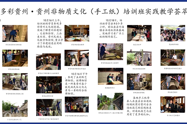 学习期间,贵州省非遗博物馆、香纸沟古法造纸传习所、丹寨石桥古法造纸传习基地等的考察游学,现场交流让参加活动的所有人都收获丰盛。结业时的研修作品展让人回味无穷。伟德国际1949官网不仅成功完成本次任务,对应用型人才培养、相关学科进一步优化发展积淀了素材,参加活动的师生得到了宝贵的实践机会,综合能力得以提高。
