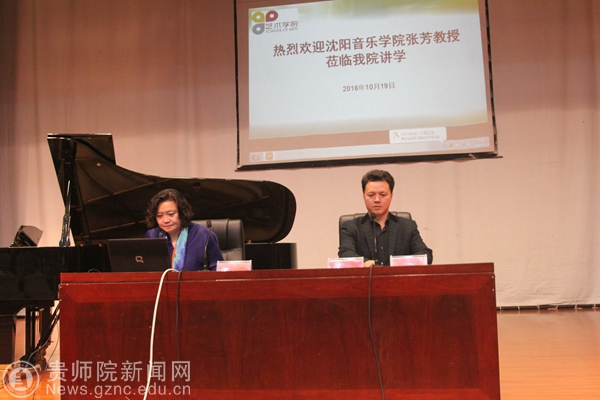 本网讯 10月19日,沈阳音乐学院张芳教授来我校展开学术交流讲座。艺术学院党委书记付巧、院长马关辉及音乐系教师和同学参加了活动。讲座由艺术学院院长马关辉主持。