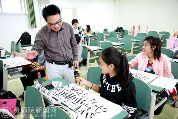 老师耐心讲授中国书法的精髓