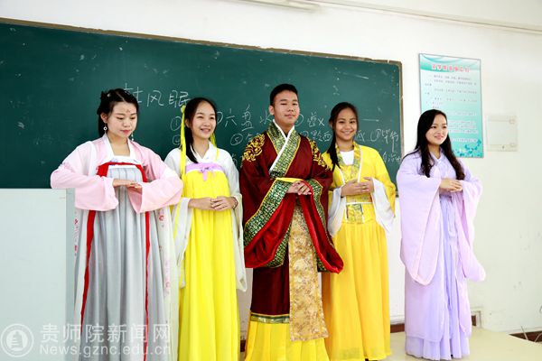 10月13号下午,赵景飞博士在《贵州自然与人文知识》课上引经据典地向营员们介绍贵州美丽的自然风光和与多姿多彩的民族人文风景;10月14日上午,卓婷老师的《汉语知识专题》通过课外文化拓展,教授《送别》歌曲,并让营员们穿上汉服,感受中国的传统文化,令营员们兴趣盎然;下午,陈火青老师的《中国书法教学专题》,把书法理论与实践相结合,让营员们通过学习写毛笔字,体会中国书法的文化内涵;10月15日上午,由具有多年国际汉语教育的徐望老师为同学们上了《汉语听说能力训练专题》,徐望老师上课生动有趣,层层递进,兼顾各个语言层次的学生,让每个营员都学有所得。徐望老师还拓展课程,给营员教授编织中国结;下午,曹月勇教授最具中国特色的《中国传统武术》,营员们认真学习棍术,在实践中体验了中国功夫。