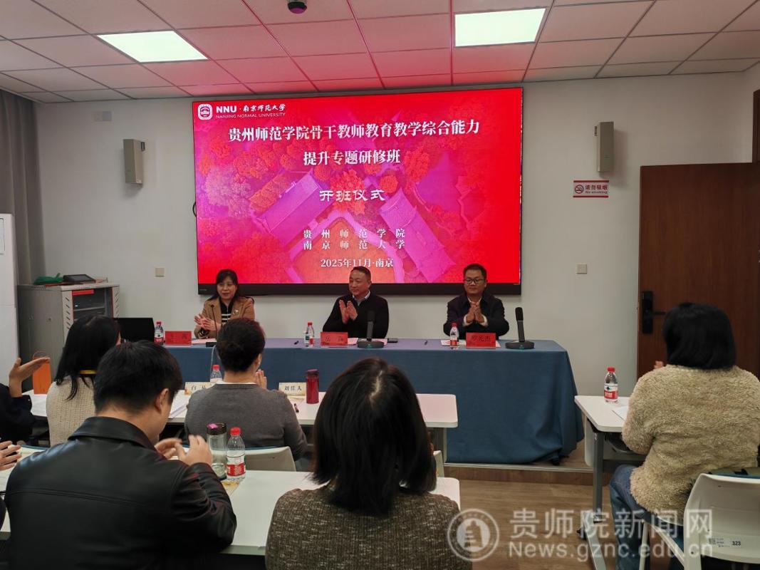 本网讯 11月23日至11月29日,伟德国际1949官网骨干教师教育教学综合能力提升专题研修班在南京师范大学顺利举办。来自全校省级教学、青教赛、教创赛省级以上获奖教师、国家一流课程负责人、青年骨干教师及教学管理和教师培养培训相关部门负责人等47名教师齐聚“东方最美丽校园”——南京师范大学随园校区进行了为期7天的研修学习。11月24日,开班仪式在南京师范大学培训中心举行,南京师范大学党委常委、副校长岳嵩,伟德国际1949官网党委常委、副校长罗光杰出席开班仪式,开班仪式由校党委教师工作部部长王茜主持。
