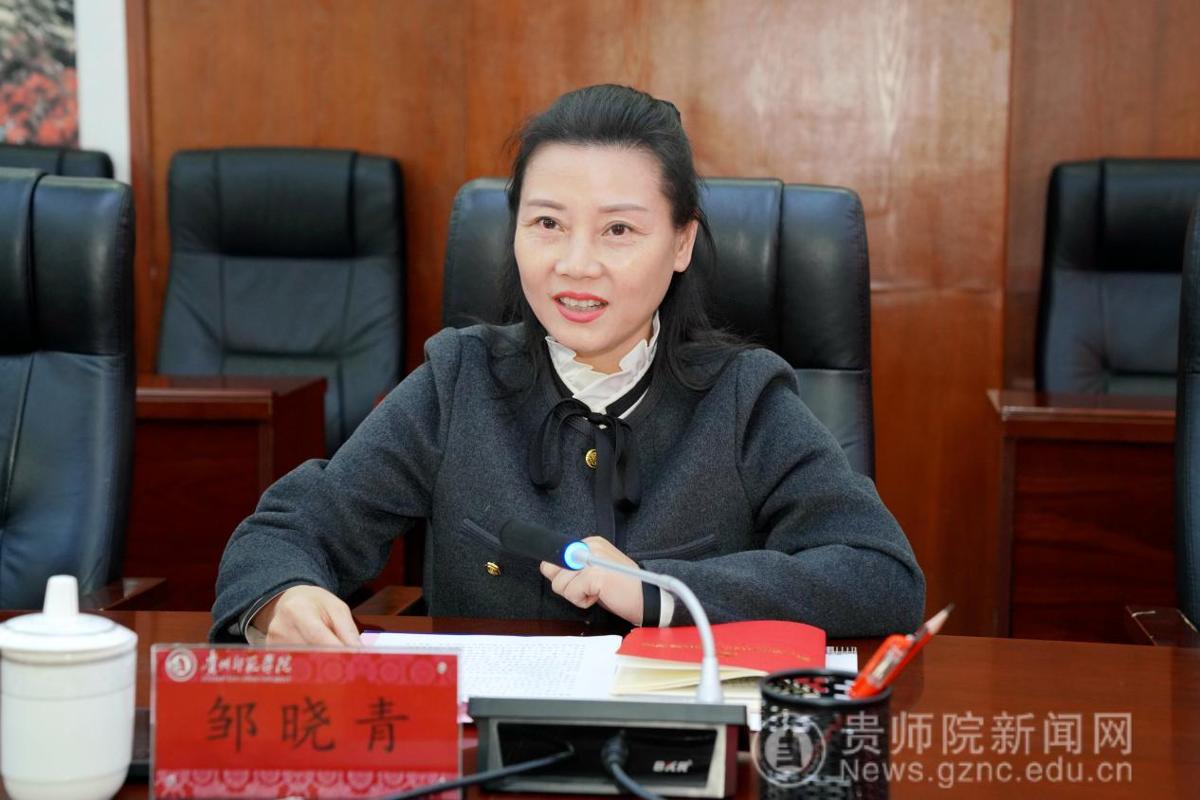 邹晓青代表学校对黔南民族师范学院一行的到来表示热烈欢迎,并向何滨一行介绍了我校的发展历程、办学理念、目标方向等。邹晓青表示两个学校一直都保持着良好的交流互动,强调校际交流是凝聚发展共识、共享优质资源的重要途径,希望两个学校多加强交流合作、共同发展,为贵州经济社会发展作出贡献。