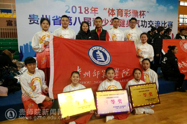 本网讯 12月7-9日,由贵州省体育局、贵州省教育厅主办的“贵州省第八届青少年健身气功交流比赛”在清镇市贵阳幼儿师范高等专科学校举行。本次比赛共有来自全省各地的114支代表队,共计650余名运动员参赛,设有易筋经、五禽戏、六字诀、八段锦普通功法和竞赛功法项目。由我校体育学院唐孟和何春花老师任领队教练,体育学院10名学生组成的两支队伍赴赛,经过激烈角逐,最终斩获团体项目一等奖1项、二等奖1项、三等奖1项,个人项目第一名1项、第五名2项、第六名2项、第八名2项、第十名1项的佳绩。
