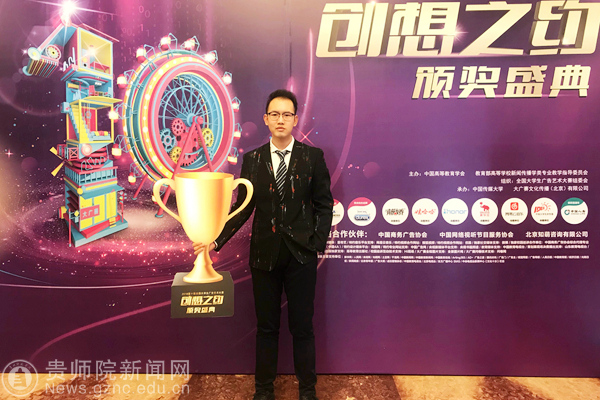 第十届大广赛主题口号为“创意我闪耀”,共有1449所高校参赛,经校级初选后,共收到作品251656组(约50万件)。经过三个月的省级评选、全国评审、网上公示,最终产生全国一等奖108组、二等奖329组、三等奖824组、优秀奖2835组。据初步统计:我校文传学院在本次大赛中获得全国二等奖1项、三等奖2项、优秀奖9项。获贵州省赛区一等奖9项、二等奖14项、三等奖22项、优秀奖32项。其中新媒体类获奖比例为93%、广播类获奖比例为92%、视频类获奖比例为75%、微电影类获奖比例为67%。我校文传学院16级赵伟韬同学主创的视频类影视广告作品《现在就出发》(指导老师:娄立原)更斩获全国级二等奖,赵伟韬同学作为获奖代表上台领取了获奖证书和奖品。