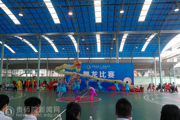 本网讯 为了彰显中国传统文化特色,增强中华民族精神。10月20日由贵阳市政府主办,贵阳市体育局承办,贵州师范大学求是学院协办的“贵阳市第十三届运动会舞龙比赛”在求是学院举行。