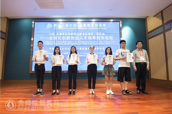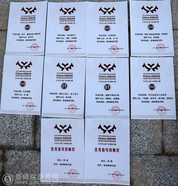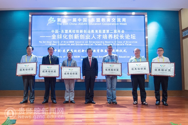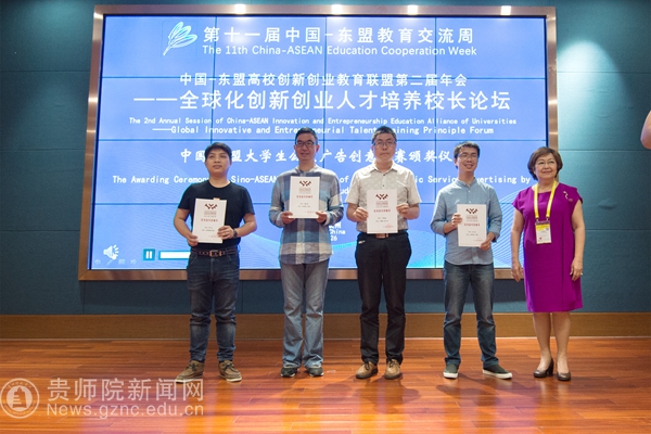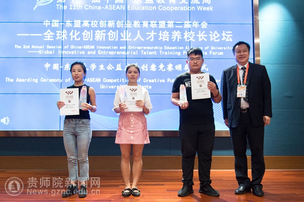 本网讯7月26日,以“教育合作新起点 ,人文交流新未来”为主题的第十一届中国—东盟教育交流周在贵安新区开幕。我校美术与设计学院院长聂森、美术教研室副主任廖江华以及获奖学生参加了中国-东盟大学生公益广告创意竞赛颁奖仪式。