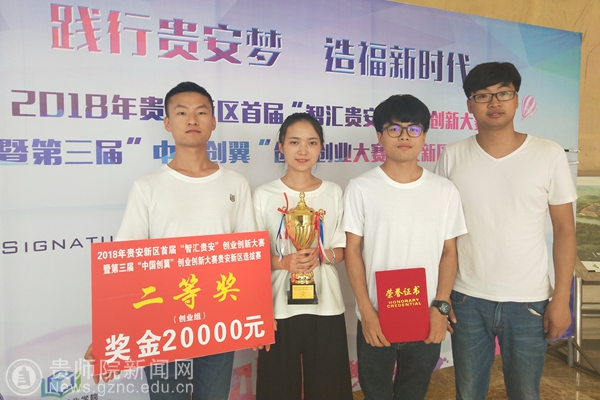由我校数学与计算机科学学院学生余雄、覃春华、马敏玲、潘承昌、潘炫筱、万吉鑫、张林、张天星、周俊豪组成的团队在桑海伟博士的指导下,先后参加了初赛、复赛、决赛的全部活动。决赛由五名评委打分、五名投资方投票、两名监票员监票、两名公证员公证,我校数计学院学生经过6分钟路演、3分钟答辩和电梯30秒决胜,最终,从贵州数十家公司和贵州十余所高校的130个创业参赛团队中脱颖而出,以第二名获大赛二等奖的优异成绩,并获奖金20000元。