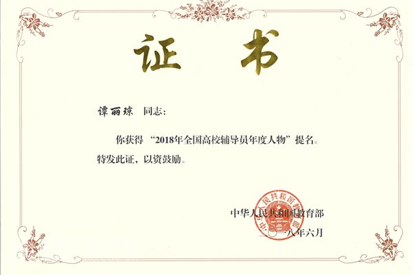 我校谭丽琼老师荣获“2018年全国高校辅导员年度人物”提名奖。