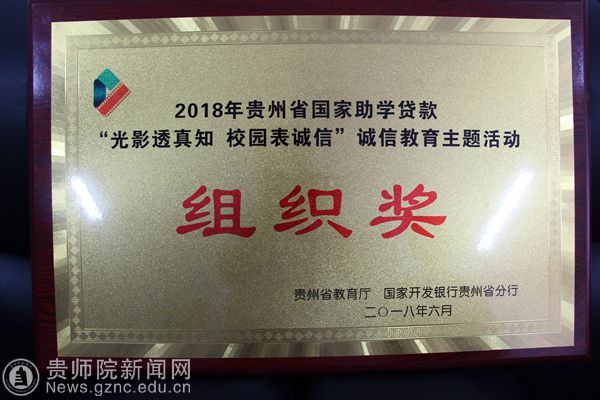 本网讯 6月21日,由贵州省教育厅、国家开发银行贵州省分行主办,贵州师范大学承办的历时三个月的“2018年贵州省国家助学贷款诚信教育主题活动——微电影大赛”落下帷幕,我校荣获二等奖,在全省近60所参赛高校(含高职高专)排名第六。我校同时获得2018年国家助学贷款诚信教育活动组织奖。