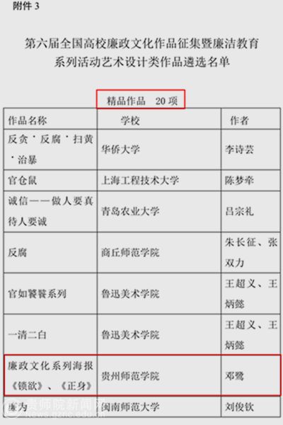 本网讯 近日,由国家教育部发起并举办的第六届全国高校廉政文化作品征集暨廉洁教育系列活动已公布结果。我校设计学院教师邓鹭创作的廉政文化主题海报《锁欲》、《正身》获得艺术设计类全国精品作品。此系列海报以汉字“欲”、“正”与铁锁、尺子进行创意,以此来表现“锁紧欲望口,能防贪腐心”、“摆好正身尺、行事无私情”的廉政理念,以此阐释个人道德修养与反腐倡廉教育的重要关系。