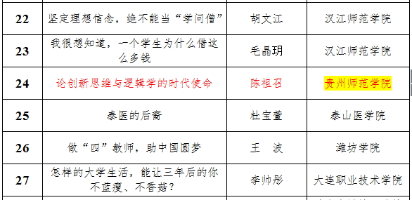 本网讯 近日,由教育部思政司、中央网信办社会工作局、中国大学生在线联合主办的“第二届全国大学生网络文化节”、“全国高校网络宣传思想教育优秀作品推选”公布获奖名单。在“全国高校网络宣传思想教育优秀作品推选”中我校经济与政治学院副院长陈祖召撰写的《论创新思维与逻辑学的时代使命》获网文三等奖。