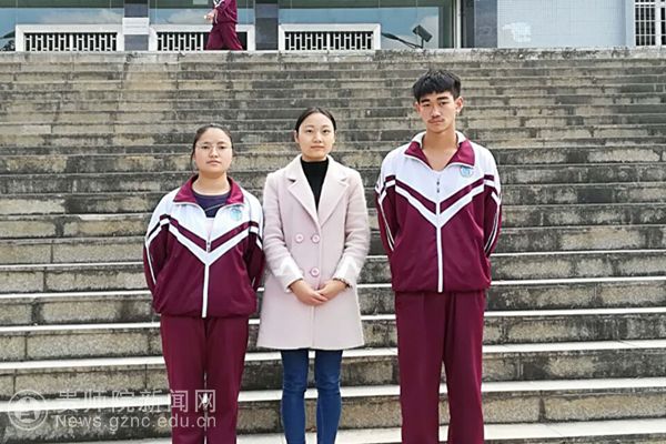 我校实习生龙洋与其指导学生朱桂英、王康宁合影