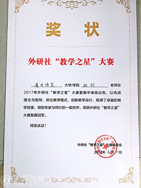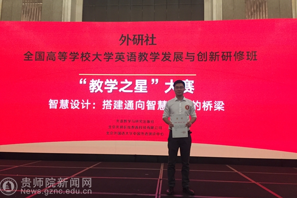 外研社“教学之星”大赛是我国高校外语界公认的权威赛事,与教育部外国语言文学类教指委、上海外国语大学主办的另一赛事——“外教社杯”全国高校外语教学大赛一起构建了中国高校外语教学的两大顶级赛事体系,从中脱颖而出的选手代表了我国英语教师的最高水平。我校张羽老师在去年的“外教社杯”全国高校外语教学大赛中获得全国一等奖、贵州省特等奖的殊荣,并成功入选中国外语教材与教法研究中心示范课专家库成员,多次在国内各大高校及外语教师发展论坛上做示范课展示。据悉,外语学院院长余学军教授是张羽老师出击两大重要国家赛事的指导教师。