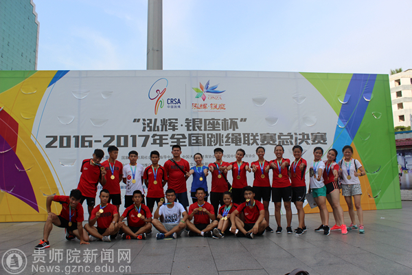 我校星跳花样跳绳队在为期四天的比赛中,与武汉体院、上海体院、广州体院、西南大学、南昌师范学院等15所高校同场竞技。在比赛中不畏强手,赛出了水平,赛出了风格,最终取得了19金、23银、17铜的骄人成绩,其中,在本次大赛特色项目4800个定数计时强心赛(青年组)中囊括男女组冠亚军,一对一对抗赛(杀刀)荣获第三名。另外还获得体育道德风尚奖和集体项目大型表演赛第二名、小型表演赛第三名。