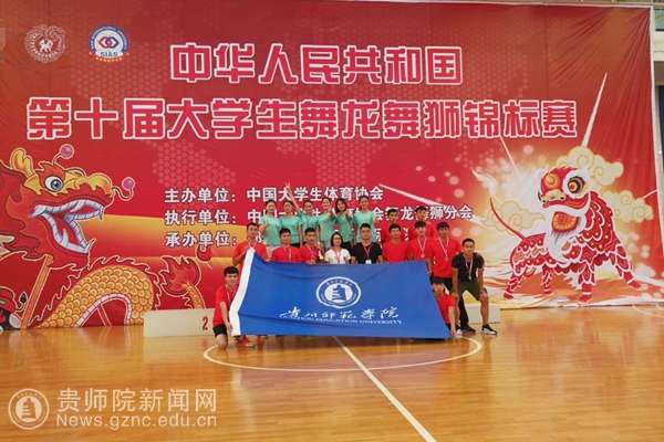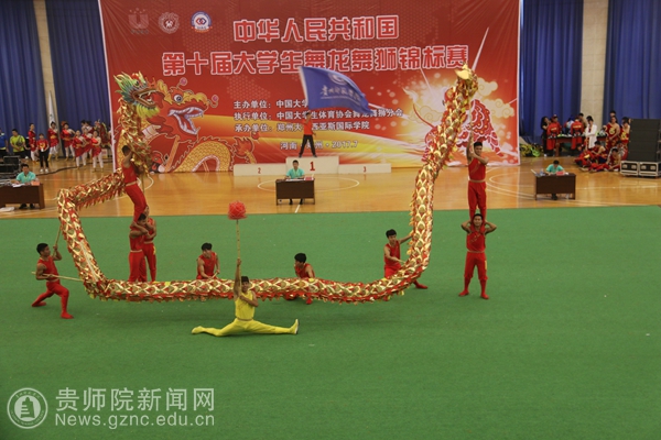 本网讯 2017年7月10日,我校舞龙队19名队员在张昕和杨昌美老师的带领下参加了在河南郑州西亚斯国际学院举行的中华人民共和国第十届大学生舞龙舞狮锦标赛。此次比赛共有来自全国45所高校的758名学生参赛,比赛项目包括舞龙规定与自选、传统舞龙、荷花龙以及舞龙教学等七大项内容。我校代表队共参加三项舞龙项目,首次出征队员奋勇拼搏、不畏强手,克服重重困难。在双龙、规定套路、自选套路比赛上分别取得了第一名、第三名和第五名的优异成绩。特别是在双龙比赛上,套路编排的新颖和音乐韵律完美结合,及队员出色的表演,把龙的神韵以及中华民族对龙文化的传承表演淋漓尽致,深深打动了现场的观众和评委,并以全场压倒性的优势领先所有对手。充分展示了我校的精神风貌,也是贵州高校代表队有史以来在此项目上获得的第一金。能取得此优异的成绩,跟队员们团队合作意识及学校领导和大家长期的支持是密不可分的,我们定当不忘初心,弘扬龙狮,砥砺前行!