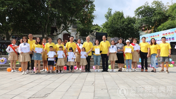 来至项目共建单位的大家长代表:贵州省陶行知教育思想研究会会长顾久,民盟贵州省委副主委冉霞,省社科联副主席刘宗严,伟德国际1949官网党委书记石培新,贵州省教育厅语委办主任朱琴,民盟省委组织处处长李智、副处长郭振、四级调研员张羽、王欣,省社科联科普部部长冯新贵、科普部三级调研员罗丽华,贵阳市关工委主任李跃南、副主任叶二仆,贵阳市委老干局副局长杨志军,花溪区文旅局副局长、民盟贵阳市委花溪区一支部盟员敖灵,花溪区关工委副主任申万荣、副主任刘开英与青岩镇党委书记赵蓉、组织委员黄源源一同参加活动,陪伴孩子们欢度特殊的节日,分享收获的喜悦。