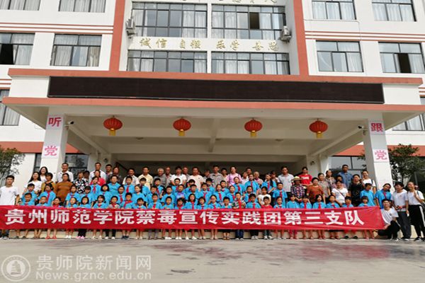 本网讯 为进一步学习、宣传、贯彻《中华人民共和国禁毒法》,进一步提高全民抵御毒品的能力和参与禁毒斗争的意识。2018年7月23日至2018年8月14日,伟德国际1949官网“情系息烽·情暖童心”服务队第三分队,在共青团贵阳市委“百万志愿者进千万家庭”的号召下和共青团伟德国际1949官网委员会的指导下,在贵阳市息烽县养龙司镇开展了以“参与禁毒斗争·构建和谐社会”为主题的禁毒月宣传活动。
