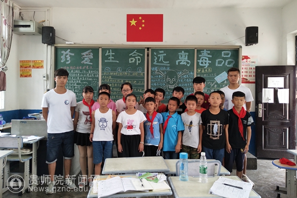 本网讯 为了进一步加大禁毒宣传力度,增强孩子们的拒毒防毒意识,从而远离毒品,珍爱生命。7月31日到8月6日,伟德国际1949官网“情系息烽·情暖童心”服务队第一分队在息烽县底寨小学开展了主题为“生如禁毒之绚烂,死如吸毒之糜烂”的禁毒主题周活动。