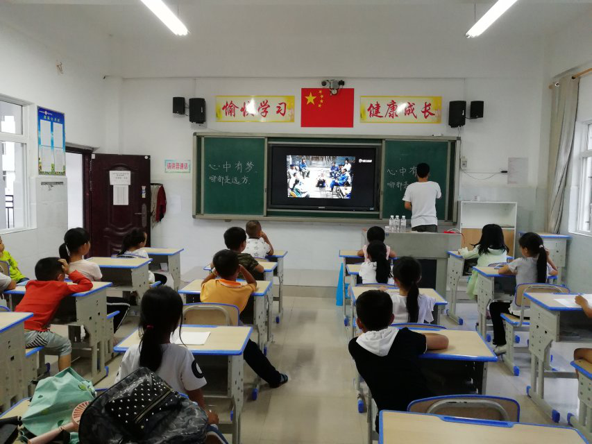 为了让孩子们能够放松心情,展望未来、望眼世界,加强孩子们对社会的美好期望,7月26日晚,志愿者在国学楼教室给孩子们进行以“梦想”为主题的教育活动。