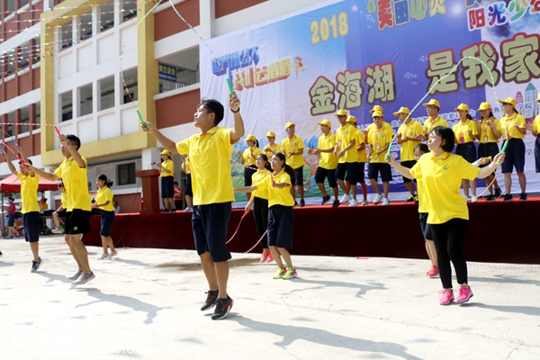开营仪式首先由浙江省陶行知研究会副会长、秘书长魏建刚代表主办单位宣布:“美丽心灵,快乐同行”关爱留守儿童夏令营由2018年起,更名为“美丽心灵,快乐同行”关爱阳光少年夏令营。此举旨在弱化留守儿童“标签”对孩子们的不良心理暗示。夏令营将根据地方实际需要拓宽服务面,增设服务内容。随后,金海湖新区管委会副主任曾艳,浙江省陶行知研究会副会长、秘书长魏建刚,贵州省陶行知教育思想研究会项目部长熊伟,金海湖新区一小校长聂宗品分别为活动致词,