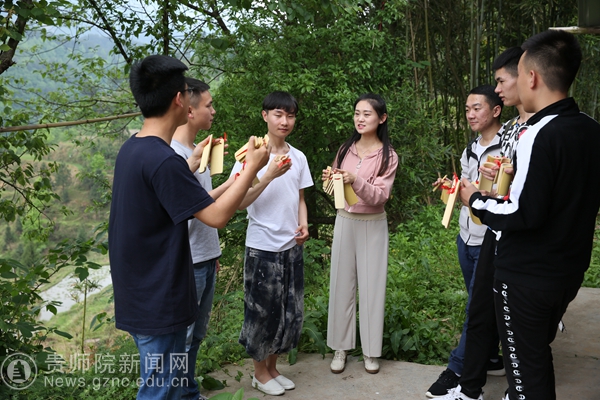 21日,校党委副书记令狐彩桃带领师生一行40余人经过近5小时的颠簸车程到达印江县。演出队伍不顾舟车劳顿第一时间奔赴黔溪村严家组展开了“艺术之星”走进田间地头的首场演出。“艺术之星”们利用歌曲、舞蹈、快板等多样形式向老乡们宣传党的十九大精神、乡村振兴战略、推进春风行动,既接地气又鼓舞人心。让大山里的老百姓在田间地头欣赏“文艺大餐”,在劳动现场为老百姓加油鼓劲。闻讯而来的当地及周围村庄的乡亲们将演出场地围得水泄不通。《为老乡奔小康》、《喊一声老黄》、《牢记嘱托》等反映激励广大群众脱贫攻坚斗志,讴歌全国时代楷模、年份英雄,宣传贯彻党的十九大精神和习近平在贵州代表团重要讲话精神的歌曲,唱响在印江峨岭街道的田间地头。《撸起袖子加油干,共建印江新家园》快板说唱:“好政策,人心暖,齐心协力把梦圆。干群同心攻坚战,党的恩情记心间。撸起袖子加油干,共建美好新家园。”引起了现场群众的阵阵叫好。