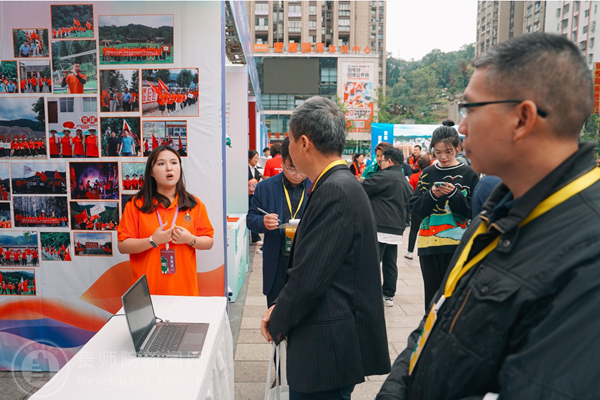 “炫美阳光”志愿服务队成员田紫瑶回答巡展提问