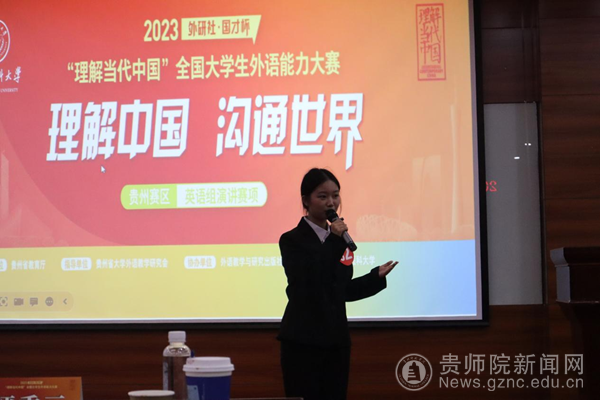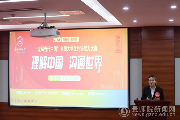 “外研社·国才杯”全国大学生外语能力大赛是面向大学生、研究生的全国外语类顶级赛事,每年举办一届,已被列入中国高等教育学会和贵州省教育厅学生竞赛目录。本届大赛由贵州省教育厅主办,外语教学与研究出版社和贵州医科大学联合协办。演讲大赛及颁奖典礼当天(11月5日),我校外国语学院余学军教授应邀担任演讲赛评委,张羽和赵先凤两位老师带队参赛。