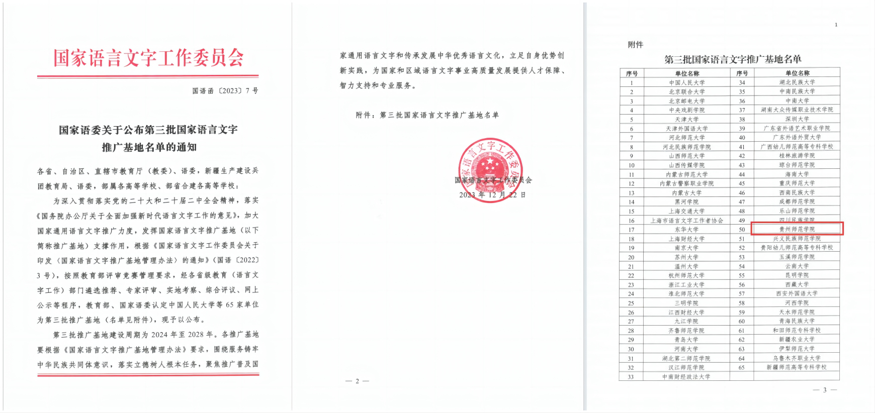 本网讯 近日,国家语言文字工作委员会公布第三批国家语言文字推广基地名单,我校成功入列,成为学校又一个国家级平台。