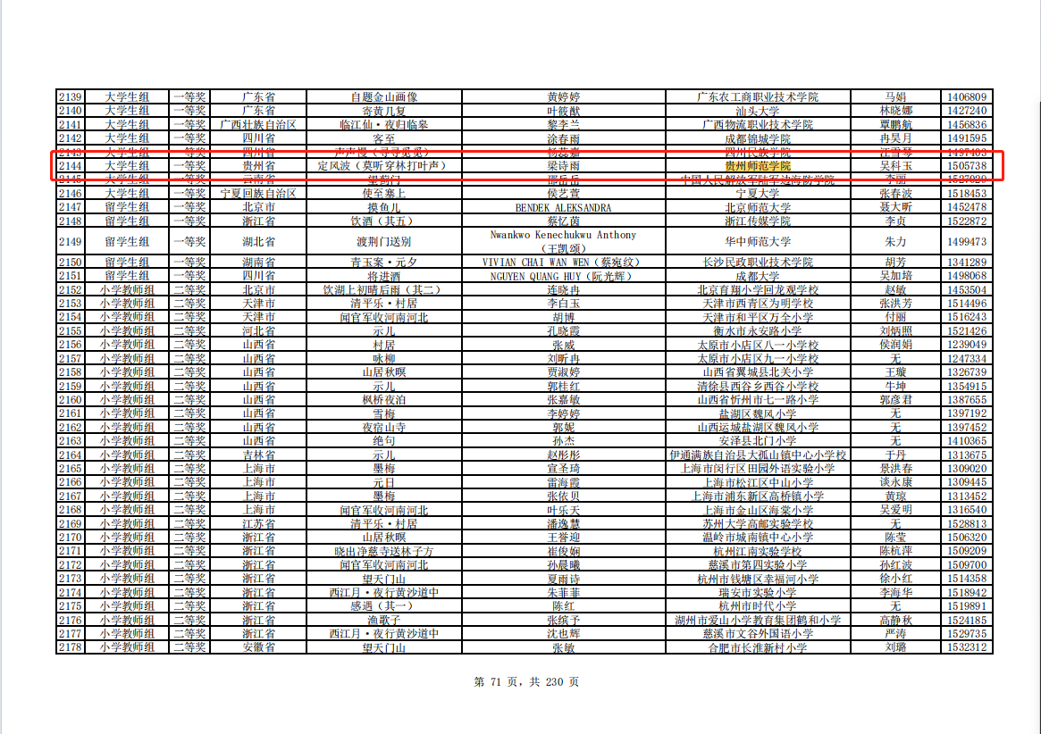 本网讯 近日,第六届中华经典诵写讲大赛获奖名单发布,我校师生在本届国赛中再创佳绩,斩获5个奖项,其中:梁诗雨同学的作品《定风波(莫听穿林打叶声)》获“诗教中国”诗词讲解大赛大学生组一等奖;杜亚钢同学的作品《左宗棠传》获“笔墨中国”汉字书写大赛大学生毛笔组二等奖;吴科玉老师获优秀指导教师奖;我校获优秀组织奖团体奖;谢安辉老师获优秀组织奖个人奖。