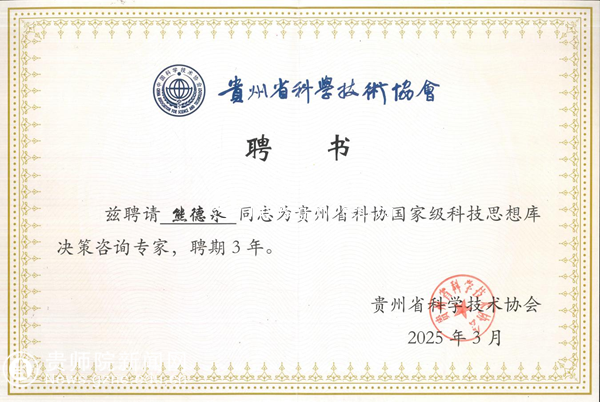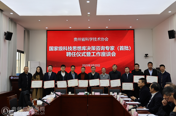 本网讯 3月20日,贵州省科协国家级科技思想库决策咨询专家聘任仪式暨工作座谈会在贵阳举行。我校熊德永老师成功入选贵州省科协首批国家级科技思想库决策咨询专家。