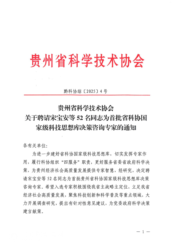 贵州省科协国家级科技思想库决策咨询专家旨在集成各类高层次人才,以自然科学领域专家为主、吸纳部分哲学社会科学领域和交叉学科领域专家,主要服务省委、省政府决策咨询需要,同时为省科协有关科技创新、科学普及、人才举荐等活动提供智力支撑。