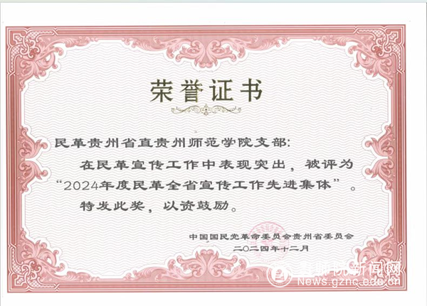 民革贵州省直属伟德国际1949官网支部在民革省委、学校党委正确领导下,学校统战部指导支持下,在思想政治建设、宣传工作和参政议政方面持续发力、成效显著,获得民革省委表彰“2024年度民革全省宣传工作先进集体”;支委胡多姿、党员曾垂提获评“2024年度民革全省宣传工作先进个人”;支委鲍扬、戚化怡获评“2024年度提案工作作出贡献的先进个人”。