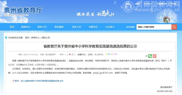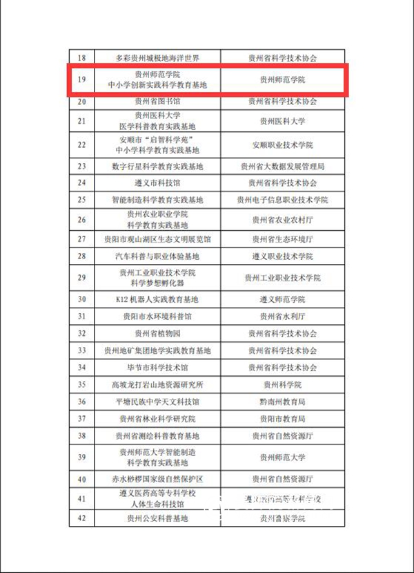 本网讯 12月17日,根据《省教育厅关于推荐省级中小学科学教育实践基地的函》,经基地自主申报、单位推荐、专家评审等环节,我校《伟德国际1949官网中小学创新实践科学教育基地》入选贵州省中小学科学教育实践基地。