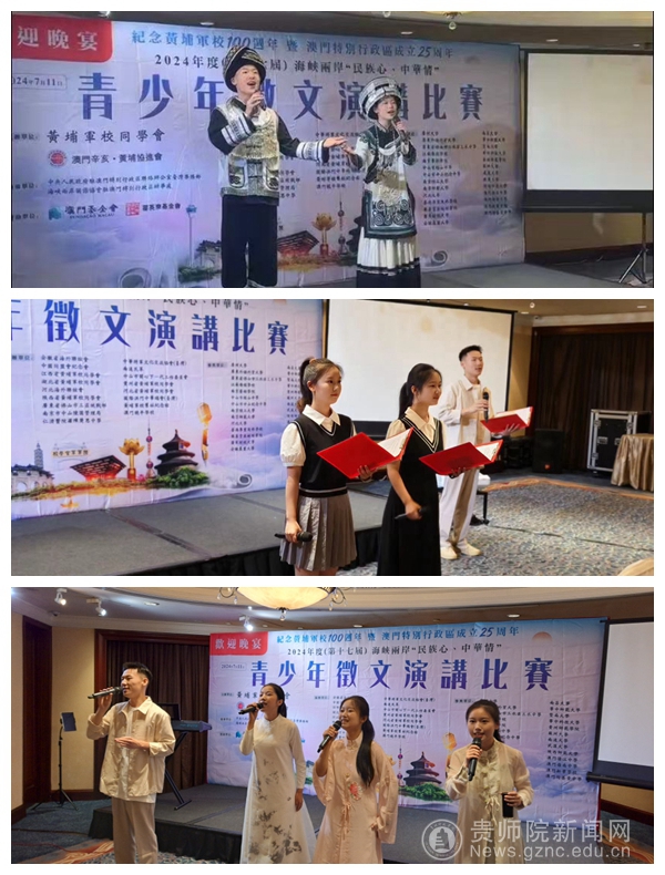 本网讯 为加强青少年爱国主义教育,推动两岸暨港澳交流和融合发展,在黄埔军校建校100周年、澳门特别行政区成立25周年之际,由黄埔军校同学会及澳门辛亥·黄埔协进会主办的2024年度(第十七届)海峡两岸“民族心·中华情”青少年征文演讲比赛于7月11日至14日在澳门成功举办。贵州省黄埔军校同学会(贵州中国和平统一促进会)秘书长杨震环率队参加比赛,我校4位同学在本次比赛中表现突出,斩获多项殊荣。