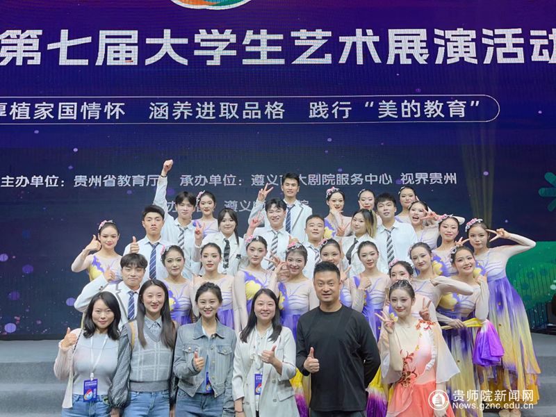 本网讯 大学生艺术展演活动自2005 年开始,每三年举办一届,是落实党中央、国务院全面加强和改进新时代学校美育工作要求展示高校艺术教育成果和大学生青春风采的艺术盛会,是全国目前规格最高、规模最大、影响最广的大学生艺术展演活动。2024贵州省第七届大学生艺术展演活动于5月11日在遵义大剧院举行,通过获奖作品的选拔,来自我校音乐舞蹈学院的7个省赛艺术表演类作品受邀,一百余名师生赴遵义大剧院参加现场展演活动。