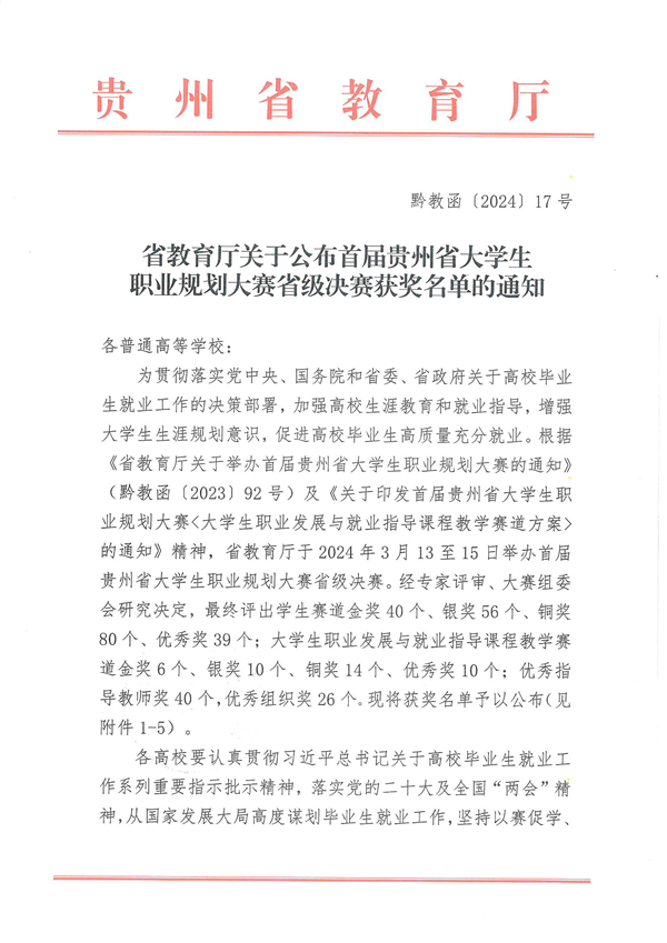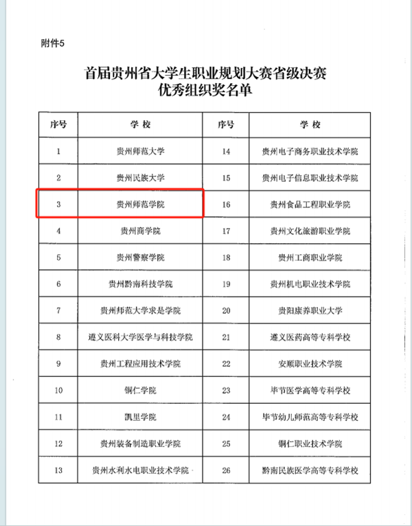 首届贵州省大学生职业规划大赛优秀组织奖名单