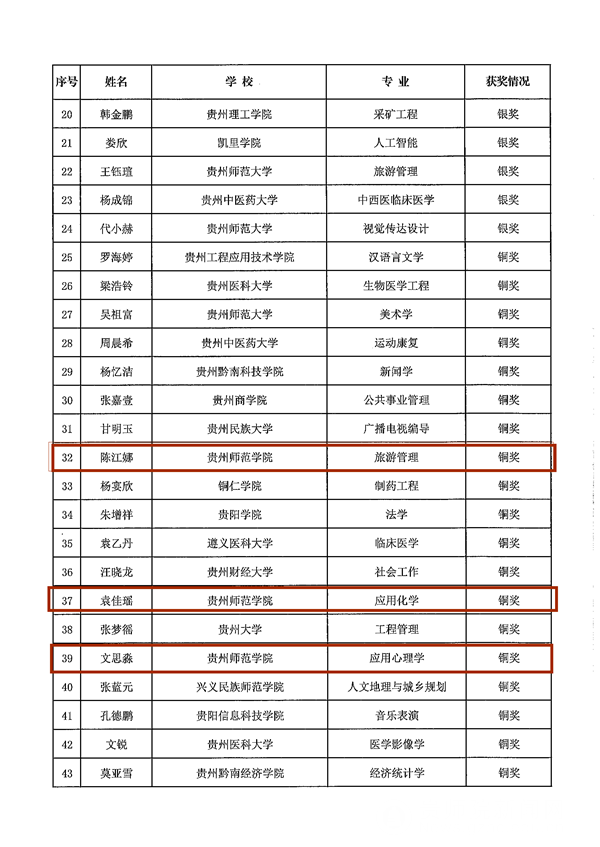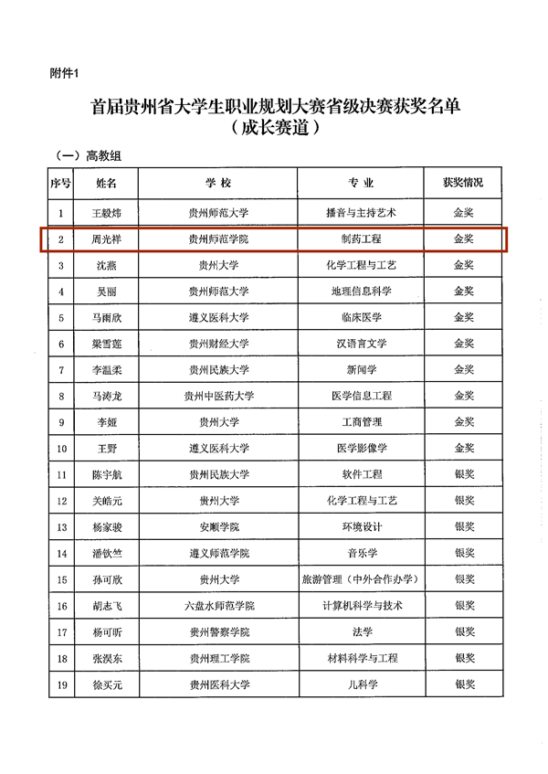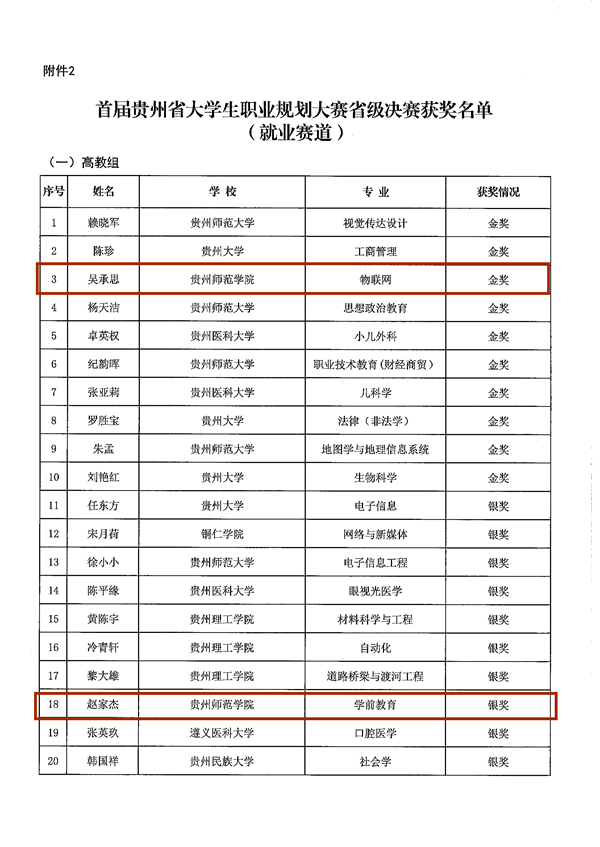 首届贵州省大学生职业规划大赛就业赛道获奖名单