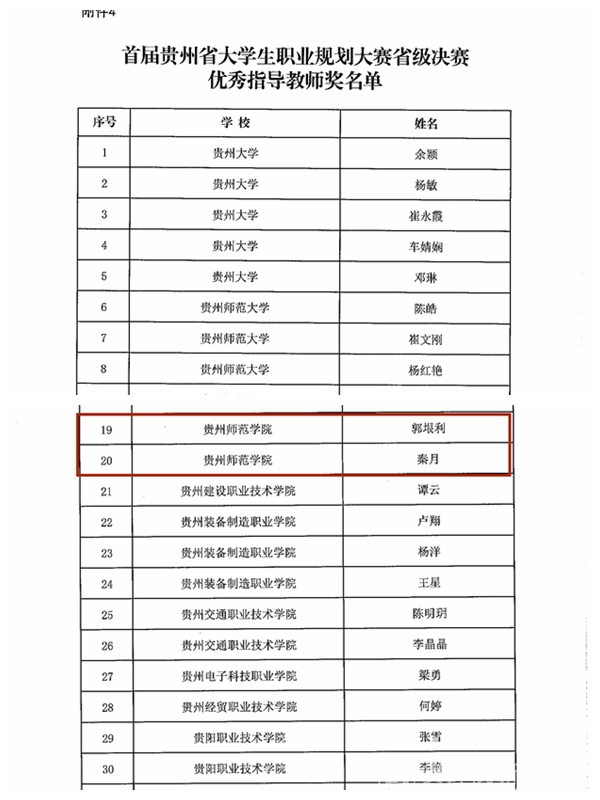 首届贵州省大学生职业规划大赛优秀指导教师名单