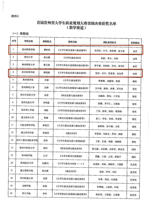 首届贵州省大学生职业规划大赛教学赛道获奖名单