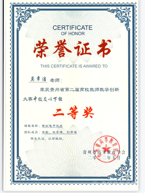 本网讯 2022年4月22—23日,由贵州省教育厅主办、贵州师范大学承办的贵州省第二届高校教师教学创新大赛在贵州师范大学顺利举办。在我校教务处的精心组织下,各学院的积极配合下,参赛选手的认真备赛下,我校物理与电子科学学院教师莫章洁荣获二等奖、地理与资源学院白易获三等奖。此次大赛对我校教师教学能力及竞赛水平的提升具有积极的促进作用,对今后的教学创新改革和提高课程建设质量具有很大的启发。