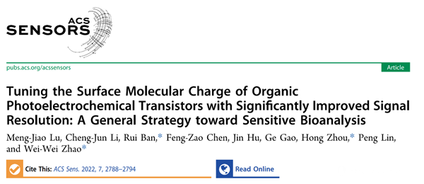本网讯 近日,伟德国际1949官网化学与材料学院班睿教授团队联合南京大学赵伟伟等团队在基于ATP刺激释放DNA超结构的有机光电化学生物传感领域取得进展,在分析传感领域Top期刊ACS Sensors(中科院1区,IF=9.618)发表题为“Tuning the Surface Molecular Charge of Organic Photoelectrochemical Transistors with Significantly Improved Signal Resolution: A General Strategy toward Sensitive Bioanalysis”的研究论文,伟德国际1949官网为该工作的第一完成单位和通讯单位。