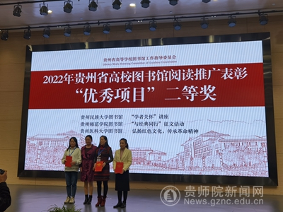 本网讯 贵州省高等学校图书馆工作指导委员会于2022年11月11日,在贵州民族大学召开年会,对高校图书馆工作进行总结,并对开展阅读推广活动获得奖项的单位、项目及个人进行了表彰。我校图书馆在组织、项目、团队等奖项中获得了很好的成绩。