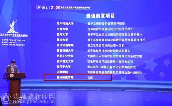 自今年年会工作启动以来,我校高度重视,并按照国创计划工作组要求开展了项目选拔推荐。我校由刘世华、谭韬老师指导何喜、屠志奎等同学完成的创业训练项目《农趣》经过层层遴选最终入选年会经验交流展示项目,以展板和网络演示的形式进行了项目交流,并获得“最佳创意奖”,刘世华、谭韬老师获得“优秀指导教师”,这也是我校首次在该年会上获奖,取得了历史性突破。
