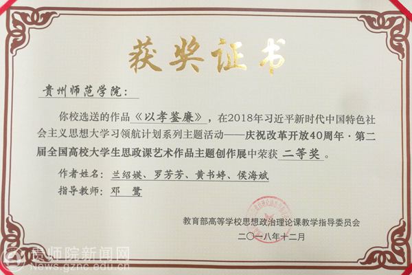 活动由教育部高等学校思想政治理论课教学指导委员会主办并进行评定,获奖作品以社会主义核心价值体系为主线,倡导社会主义荣辱观,大力传承和弘扬中国民族精神。本次比赛汇聚了全国广大青年的创意和热情,让我们对中国特色社会主义道路自信、理论自信、制度自信、文化自信有了更深一步的了解和坚信。我校此次的获奖作品正是把思政教育和专业课程有机地进行结合,从自身做起,从每一件小事做起,以更加坚定的信念、更加旺盛的斗志、更加务实的干劲,为实现“两个一百年”奋斗目标和中华民族伟大复兴的中国梦贡献自己的力量。