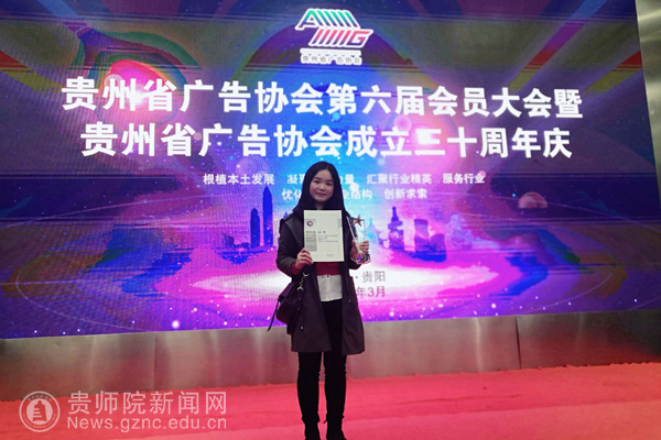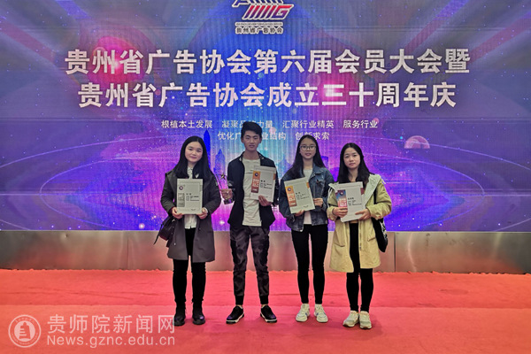 本网讯 在近日举办的贵州省第二十五届优秀广告作品评选的颁奖典礼中,我校美术与设计学院17级产品设计专业学生在此次比赛中获得银奖1名,铜奖2名,优秀奖4名,汪力老师获得优秀指导教师奖。
